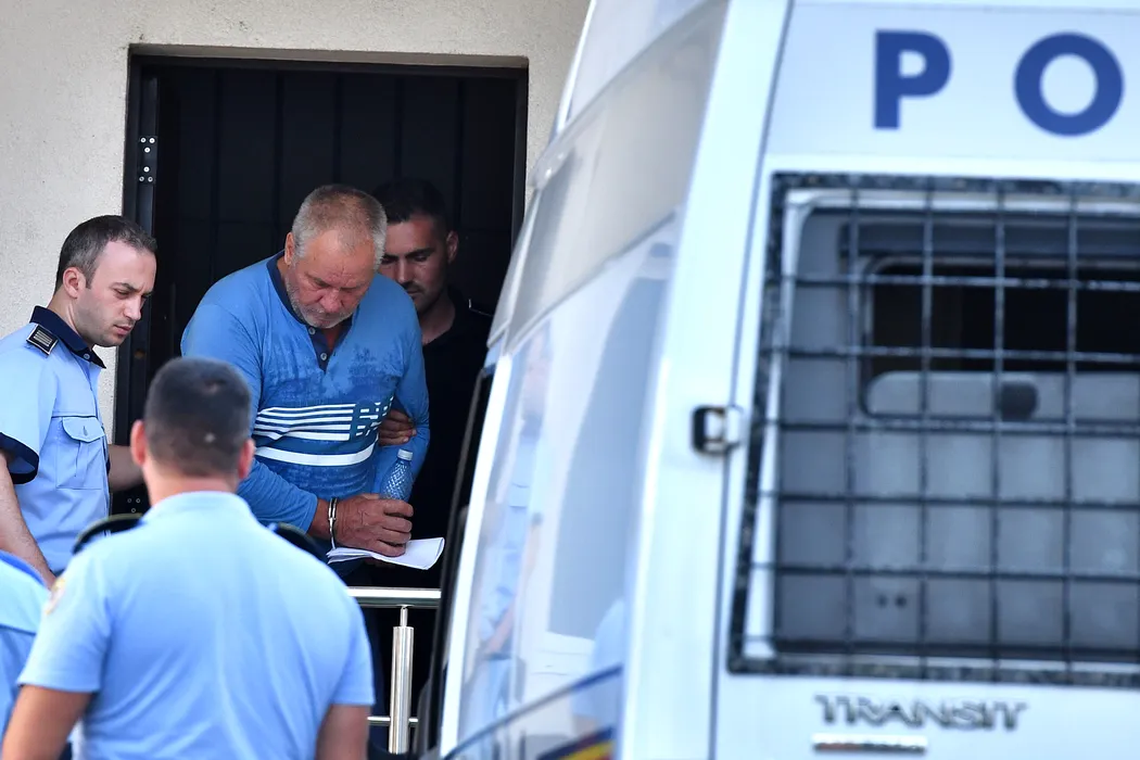 Gheorghe Dinca, principalul suspect in ancheta privind cele doua tinere rapite si ucise, paraseste insotit de politisti, sediul Curtii de Apel Craiova, marti 30 iulie 2019. REMUS BADEA / MEDIAFAX FOTO