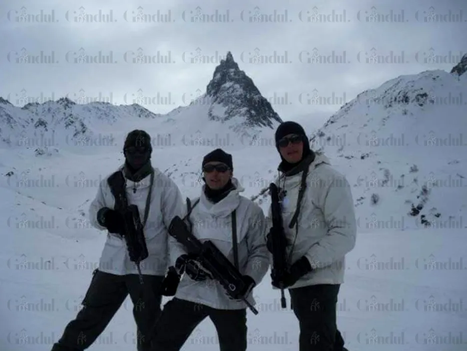 Jandarmul constățean, al treilea din dreapta, după in antrenament, pe zăpadă, la mare altitudine