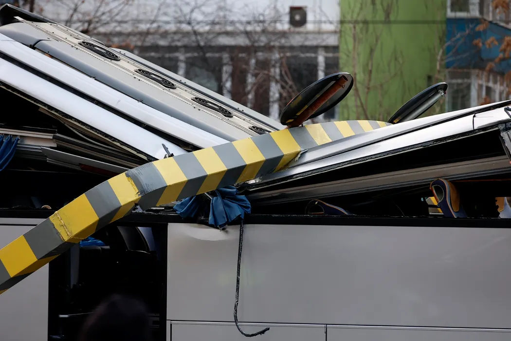 Autocarul grecesc a fost strivit de limitatorul de înălțime