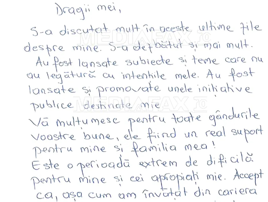 EXCLUSIV MEDIAFAX. SCRISOAREA LUI GICĂ POPESCU DIN ÎNCHISOARE. „Nu vreau ca situația în care mă aflu să nască nici disensiune, nici compasiune”
