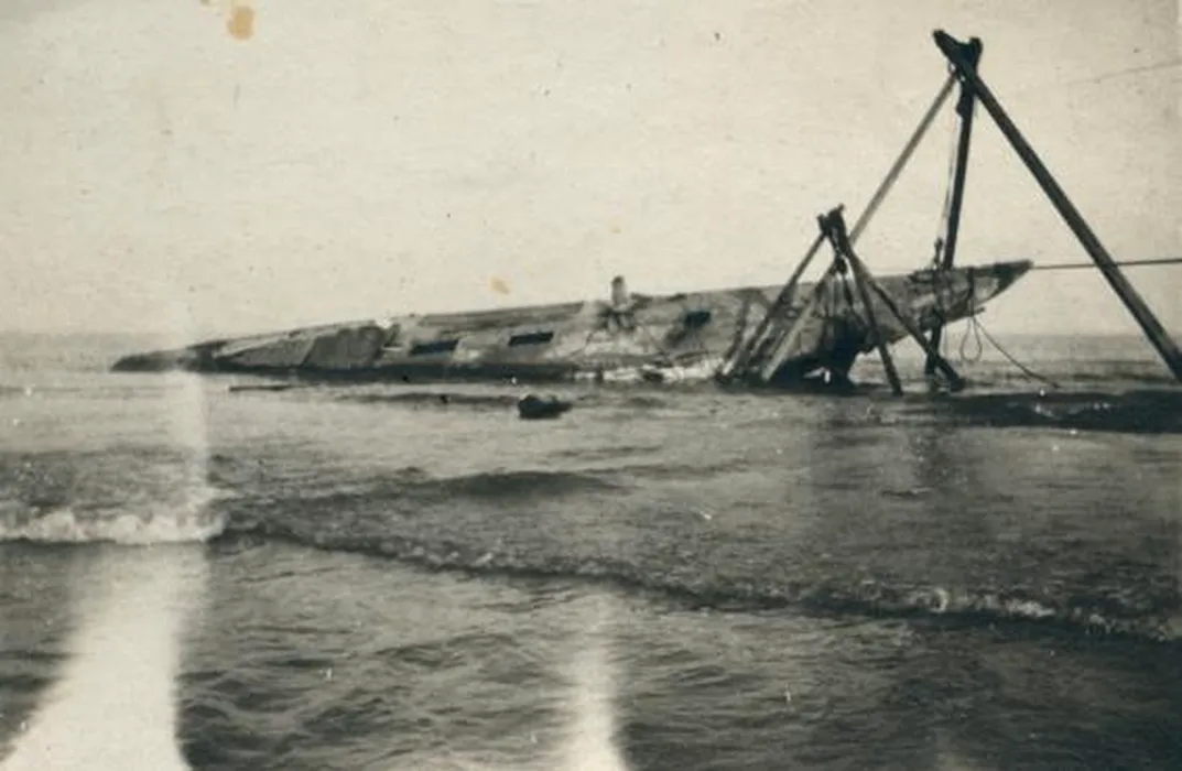 Tentativă de ranfluare a iahtului Ostara, eşuat la Sfântu Gheorghe, în 1920 (arhiva personală Sergiu Skadovschi)