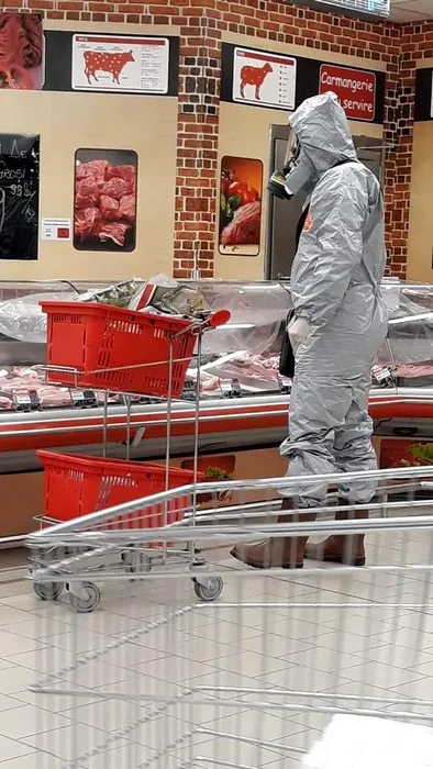 EXCLUSIV. Cum a ieșit azi un român la cumpărături. Este costumat în echipament complet de protecție pentru un „atac biologic”/ FOTO, VIDEO