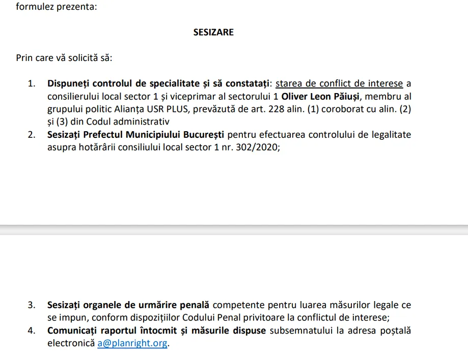 EXCLUSIV | Urbanistul Alexandru Pânișoară a făcut o sesizare la ANI pe numele viceprimarului USR al Sectorului 1: „Toate actele semnate și emise de Oliver Păiuși sunt lovite de nulitate”
