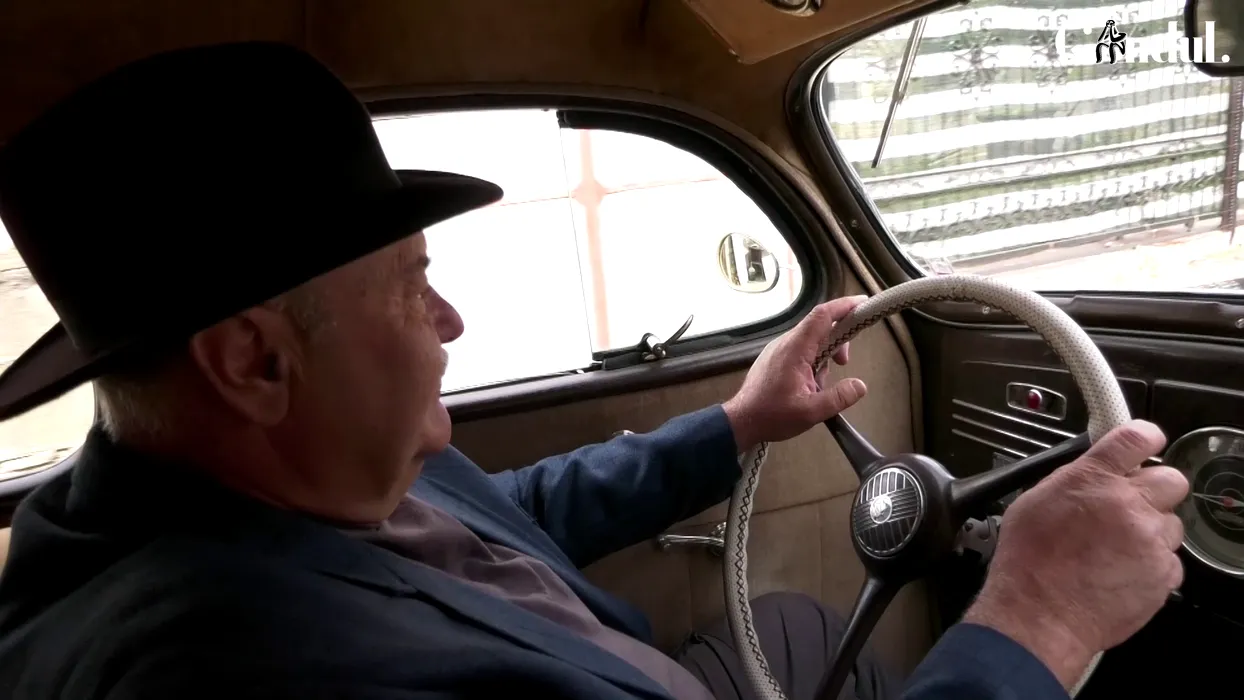 Colecționarul Viorel Burcea, la volanul mașinii Plymouth din anul 1938, ca cea folosită de comisarul Moldovan în filmele lui Sergiu Nicolaescu