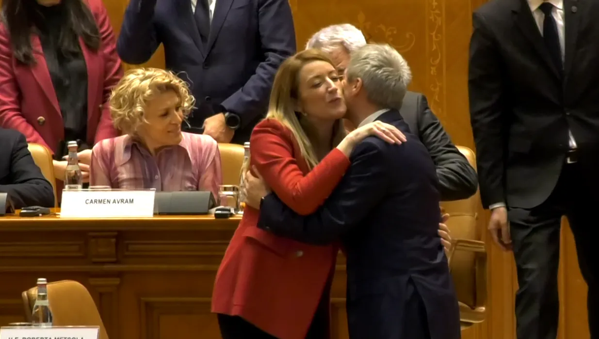 EXCLUSIV VIDEO | Ce nu s-a văzut din Parlament în timp ce Roberta Metsola transmitea mesajul de susținere a aderării României la Schengen și apelul ”Nu renunțați la Europa, nu renunțați la noi!”
