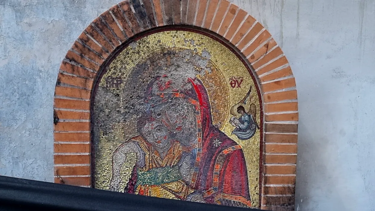 Icoana Maicii Domnului cu pruncul, afectată de incendiul care a distrus o parte din Mănăstirea Turnu, în iunie 2023. Sursa foto: GÂNDUL
