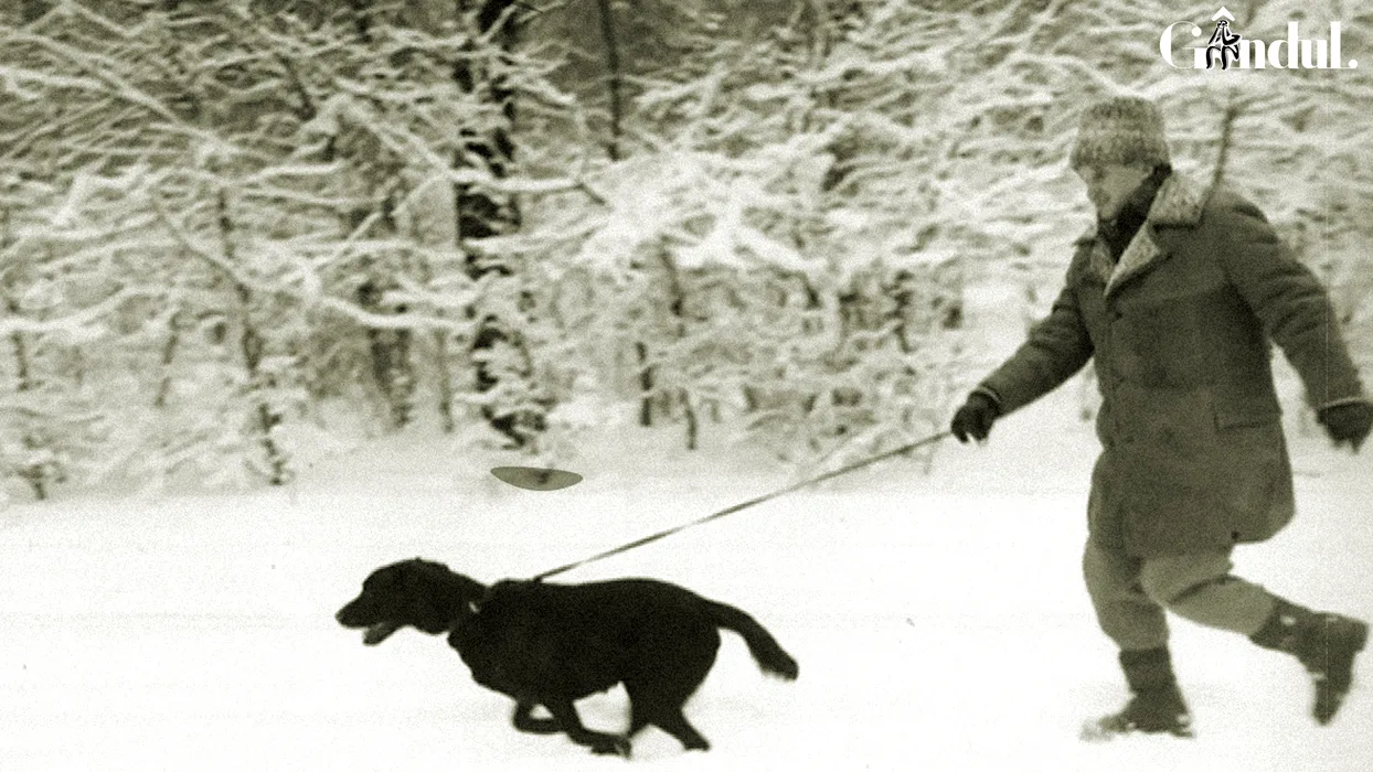 Muzeul Cinegetic Posada. Nicolae Ceaușescu, cu un câine de vânătoare