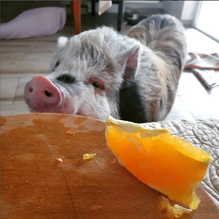 EXCLUSIV VIDEO | Singura purcelușă din România cu cont pe Instagram duce o viață de huzur. Are 120 de kilograme, căsuță de lux și se uită la filme