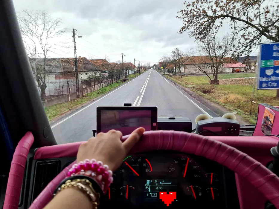 EXCLUSIV VIDEO | Șoferița Barbie de România poartă decolteu adânc, se îmbracă în roz și conduce TIR-uri. ”Aveam un vecin care mă plimba cu camionul”