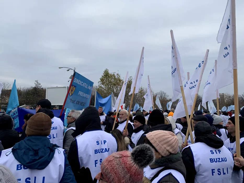 EXCLUSIV VIDEO | Sute de angajați din învățământ au protestat în fața Parlamentului pentru majorarea salariilor. „Să schimbăm salariile o lună, să vadă dacă se poate trăi cu 1.600 de lei. Ei și-au mărit salariile, nouă nu”