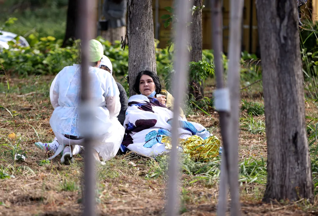 An evacuated patient of the infectious diseases hospital in Constanta, Romania, is pictured on October 1, 2021, after a fire broke out in the intensive care unit where ten Covid patients were being treated. Several patients of Covid-19 died on october 1, 2021 in the fire of a hospital in Constanta (south-eastern Romania), according to the inspectorate for emergencies (ISU). It's the third tragedy of this type recorded in less than a year in this country with dilapidated infrastructures. Five patients died in January in a fire that ravaged a Bucharest hospital, two months later another disaster killed 15 patients in a hospital in Piatra Neamt (north-east).,Image: 635667434, License: Rights-managed, Restrictions: , Model Release: no, Credit line: Profimedia