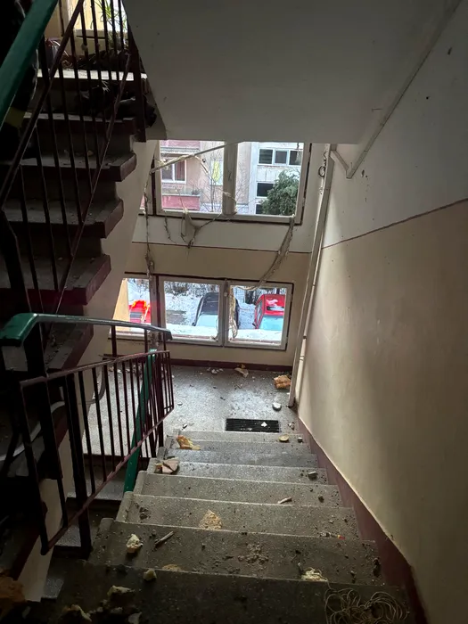 Imagini de la explozia unui apartament dintr-un bloc din Alba Iulia: doi răniți, din care unul grav care va fi transferat în străinătate. 22 de locatari au fost evacuați