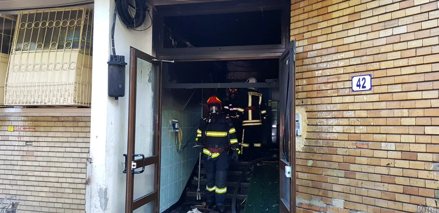 Explozie urmată de incendiu, miercuri dimineață, într-un bloc din cartierul Giulești. Mai mulți locatari au fost evacuați, iar o fată de 14 ani s-a intoxicat cu fum (FOTO – VIDEO)