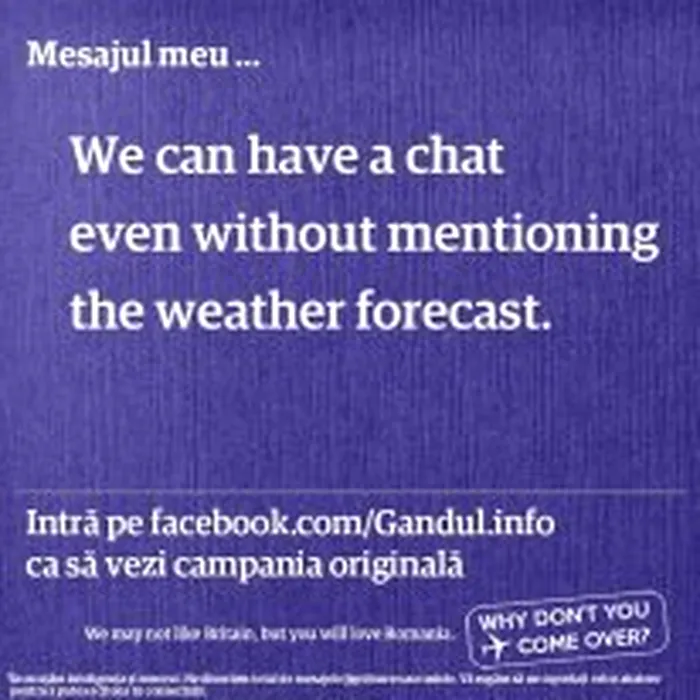Facebook a șters aplicația Gândul prin care cititorii își scriau propriile afișe în campania „Why don”t you come over?”. Aplicația va fi implementată pe gandul.info. GALERIE FOTO