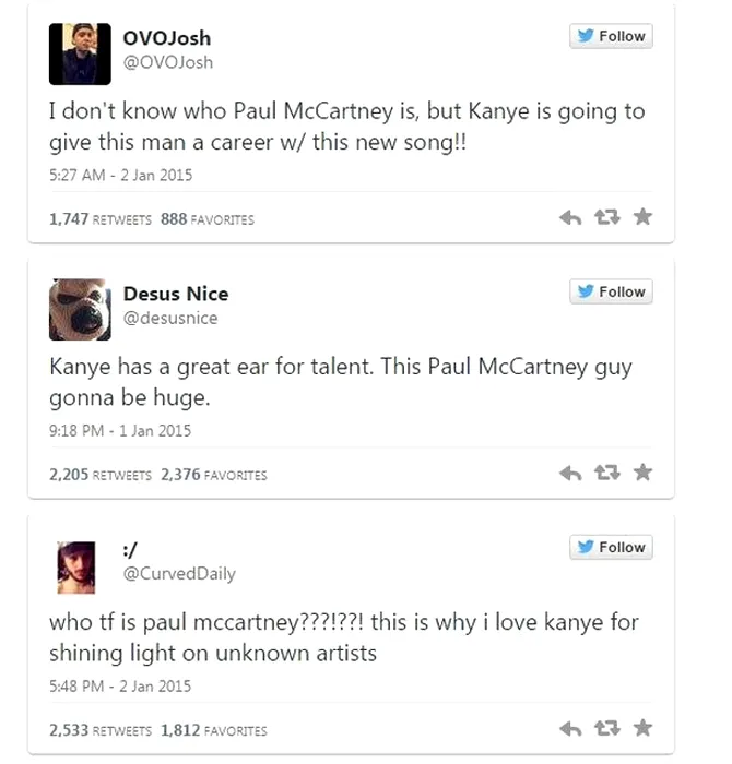 GALERIE FOTO: Fanii lui Kanye West, despre Paul McCartney: „O să ajungă mare”
