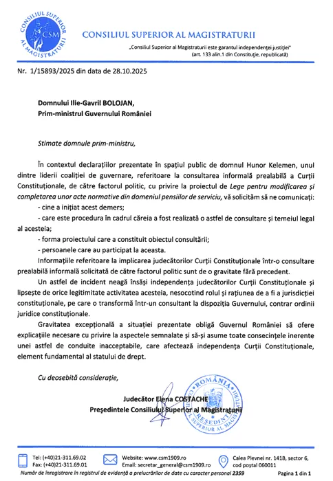 Fără precedent: CSM acuză Guvernul Bolojan și pe Kelemen Hunor că au afectat independența Curții Constituționale. Justiția îi cere lui Bolojan și CCR să spună ADEVĂRUL despre discuțiile subterane purtate pe tema pensiilor magistraților