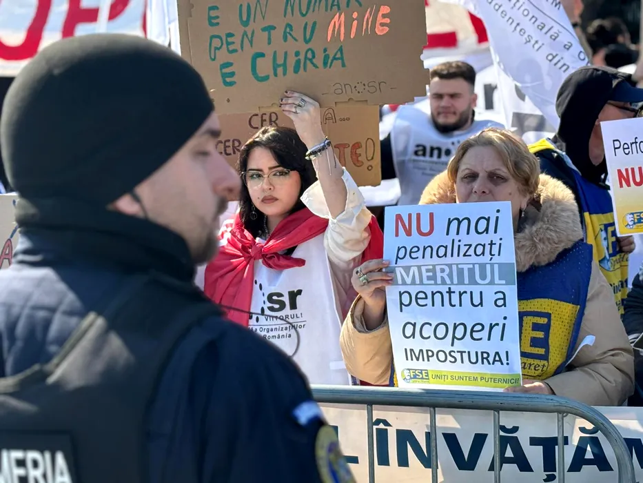 Profesorii și studenții i-au cerut demisia lui Nicușor Dan, la Cotroceni, în sunet de vuvuzele și tobe. “A uitat de noi și de promisiunile făcute”