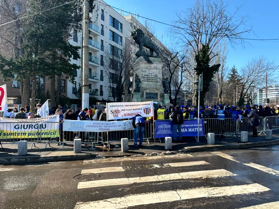 Profesorii și studenții i-au cerut demisia lui Nicușor Dan, la Cotroceni, în sunet de vuvuzele și tobe. “A uitat de noi și de promisiunile făcute”