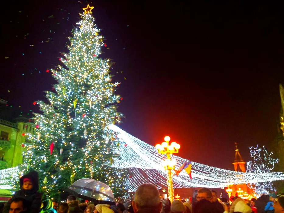 Feerie de culori în centrul Timișoarei. Târgul de Crăciun, deschis oficial de 1 Decembrie. VIDEO și FOTO