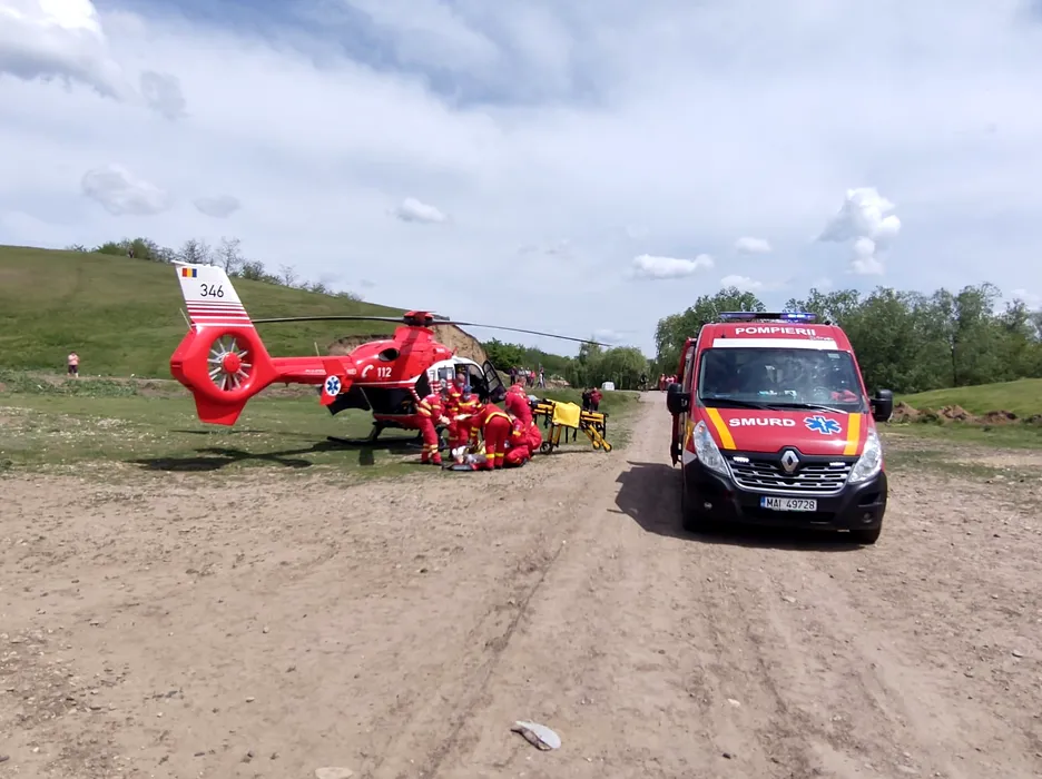 O femeie din Vaslui cu arsuri pe 60% din corp după ce i-a luat casa foc, dusă la Iași cu elicopterul SMURD – FOTO/VIDEO