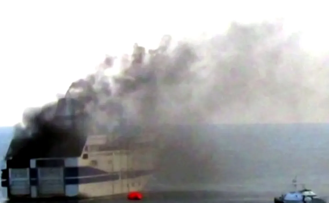 Feribot în flăcări, naufragiat în largul Greciei. Românca aflată la bord a fost salvată. UPDATE