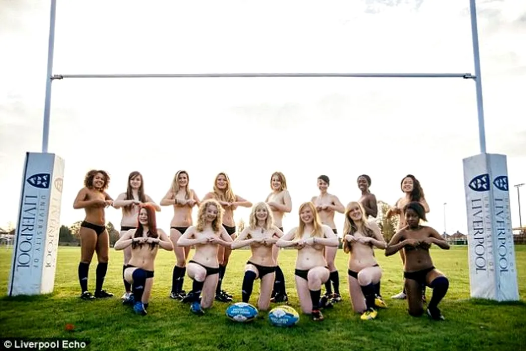 Fetele din echipa de rugby a Universității din Liverpool au renunțat la haine în scopuri caritabile