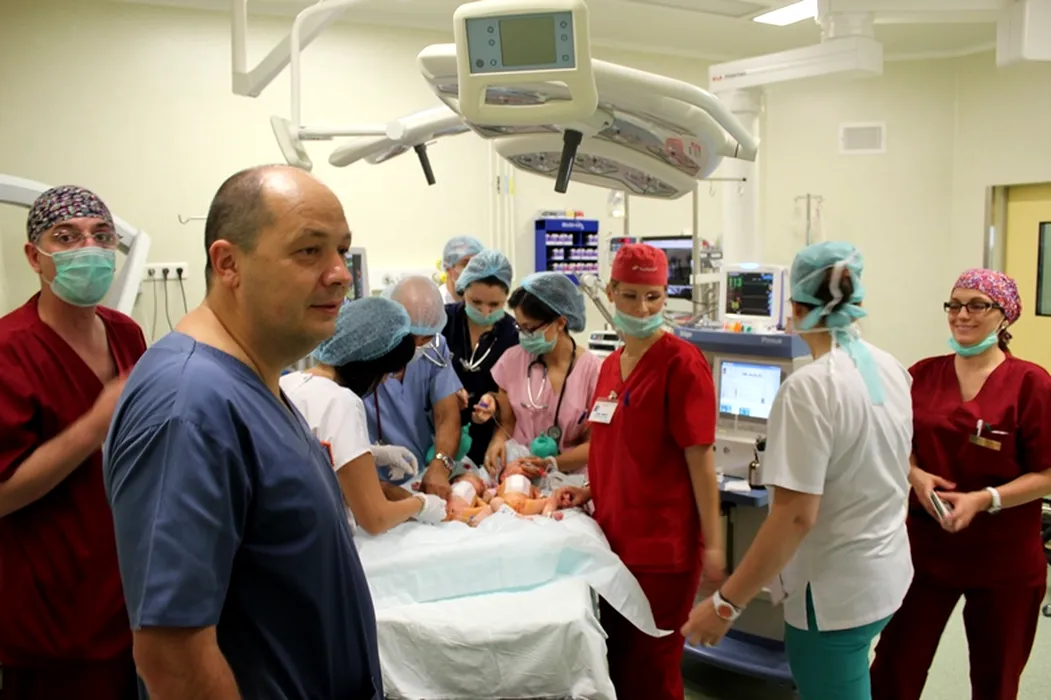 „Fetițele astea vor scrie istorie în România”. IMAGINI din timpul operației în care medicii le separă pe siamezele Sarah Maria și Elena Maia