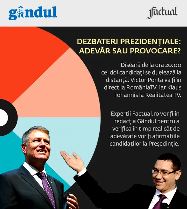 Fiecare a DEZBĂTUT de unul singur: Ponta – la RTV, Iohannis – la Realitatea. Gândul și Factual.ro vă prezintă cât ADEVĂR și cât FALS este în declarațiile candidaților