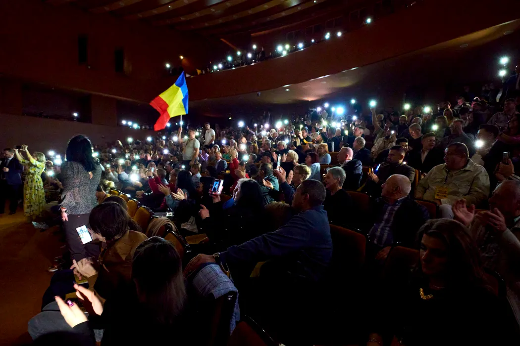 Filiala judeţeană AUR Călăraşi şi-a ales liderul pe întuneric. De pe scenă, George Simion i-a acuzat pe „mafioţii locali” de sabotaj. Până la urmă, au luminat sala cu lanternele de la telefon