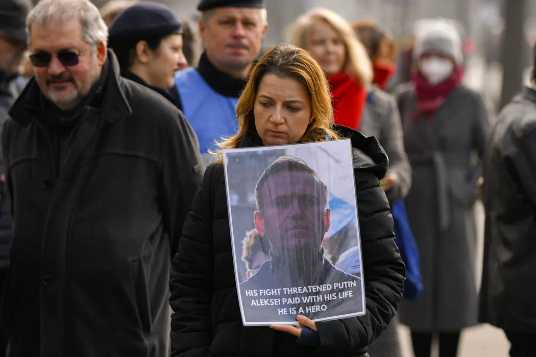 O femeiei tine in mana o fotografie a liderului opozitiei ruse, Aleksei Navalnii, in timpul unui eveniment de comemorare organizat in fata sediului ambasadei Rusiei la Bucuresti, duminica, 18 februarie 2024. Aleksei Navalnii a decedat intr-un penitenciar din regiunea siberiana, unde ispasea o pedeapsa de 30 ani pentru extremism. ALEXANDRU DOBRE/ MEDIAFAX FOTO.