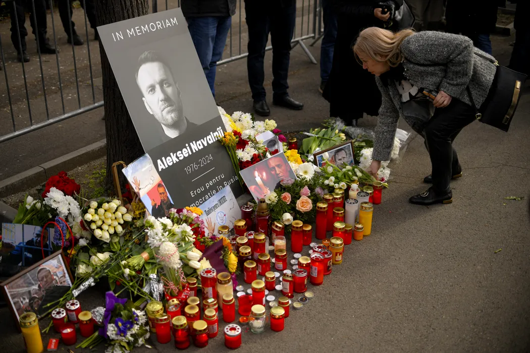 Flori și lumânări în memoria lui Alexei Navalnîi, la Ambasada Rusiei de la București: „Erou pentru Democrație” / „Putin criminal”
