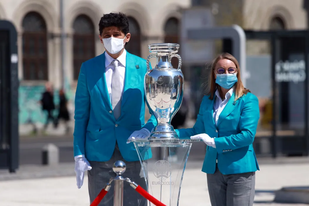 Miodrag Belodedici și Gabi Szabo, alături de de trofeul EURO 2020 la București (FOTO: Alexandra Pandrea)