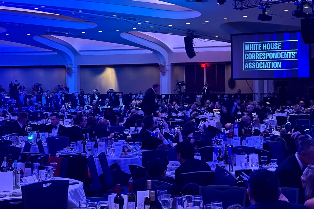 Guest take cover during the White House Correspondents Dinner, Saturday, April 25, 2026, in Washington.,Image: 1094490117, License: Rights-managed, Restrictions: This content is intended for editorial use only. For other uses, additional clearances may be required., Model Release: no, Credit line: Alex Brandon / AP / Profimedia