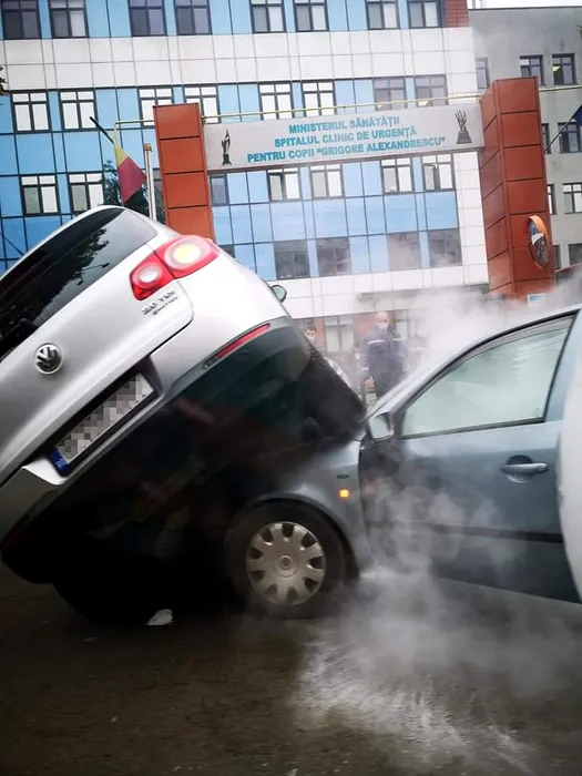 Gândul LIVE. Accident ca acesta nu s-a mai văzut în București! În ce poziție a rămas o mașină după o tamponare în centrul Capitalei