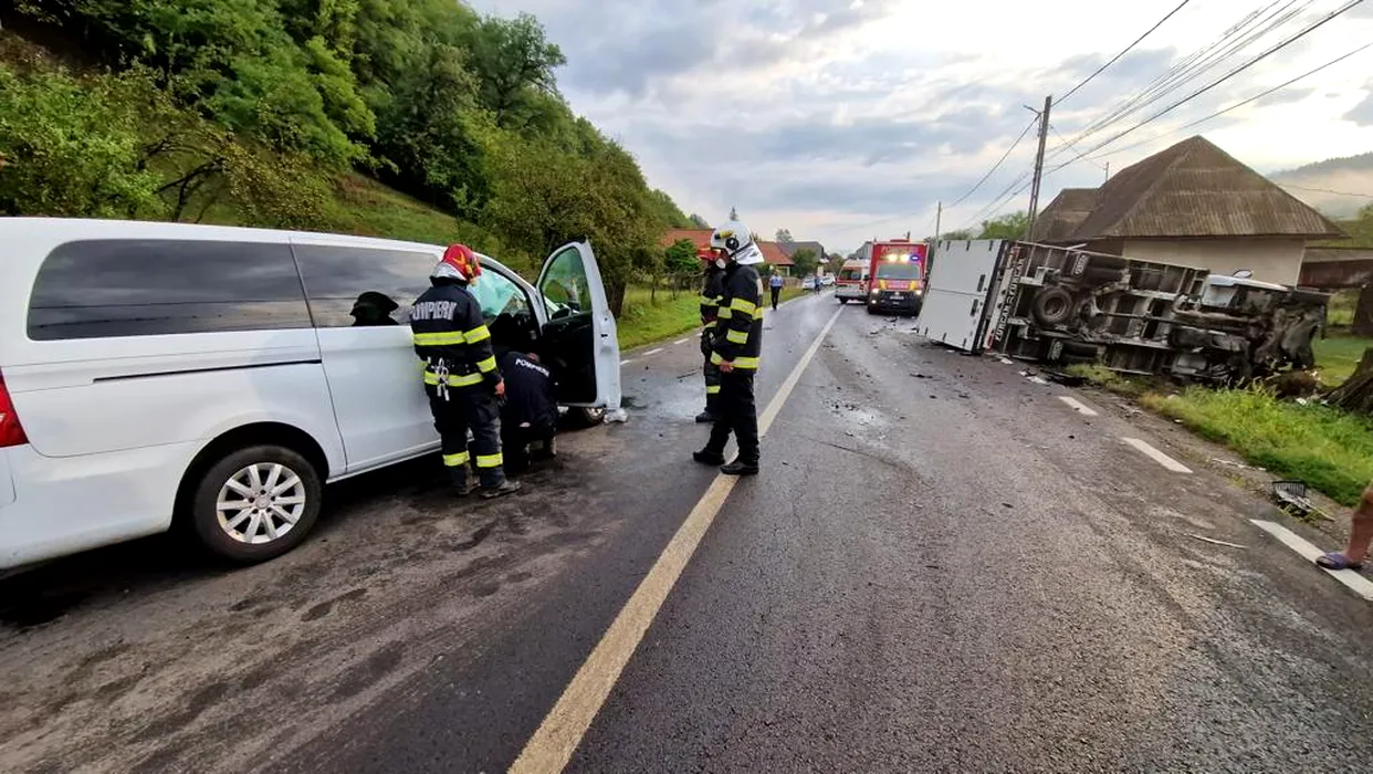 FOTO | Accident grav! O familie cu șapte copii se afla în mașina distrusă într-un accident rutier din județul Bacău