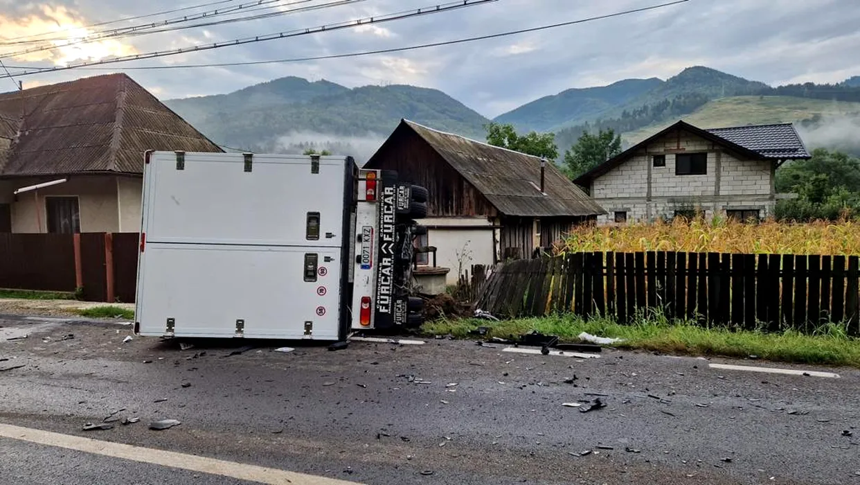 FOTO | Accident grav! O familie cu șapte copii se afla în mașina distrusă într-un accident rutier din județul Bacău