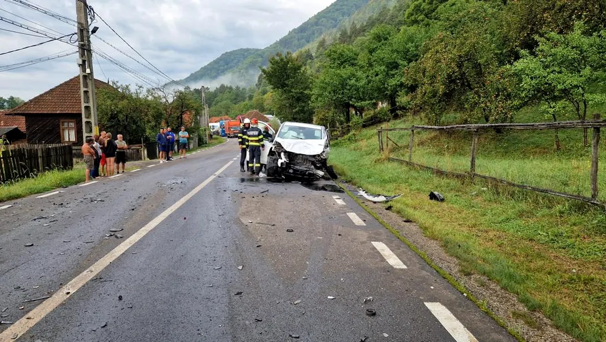 FOTO | Accident grav! O familie cu șapte copii se afla în mașina distrusă într-un accident rutier din județul Bacău