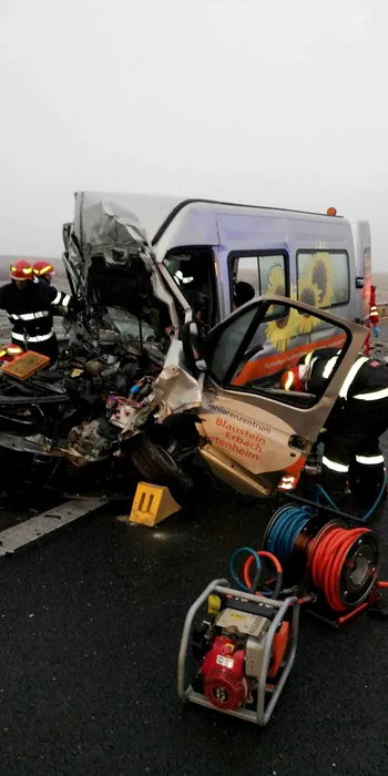FOTO | Accident grav pe autostrada A1 Arad – Timișoara: Primele informații arată 5 oameni încarcerați și o persoană decedată