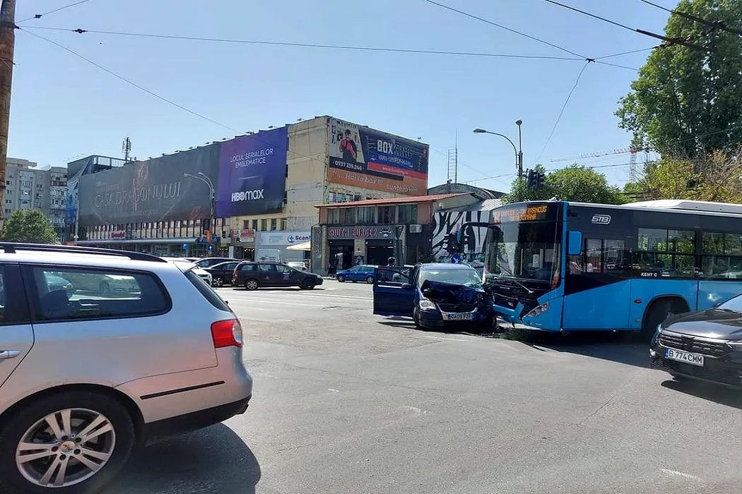 FOTO | Accident grav pe Șoseaua Panduri din Capitală. Mai multe persoane au fost rănite în urma impactului dintre un autoturism și un autobuz STB