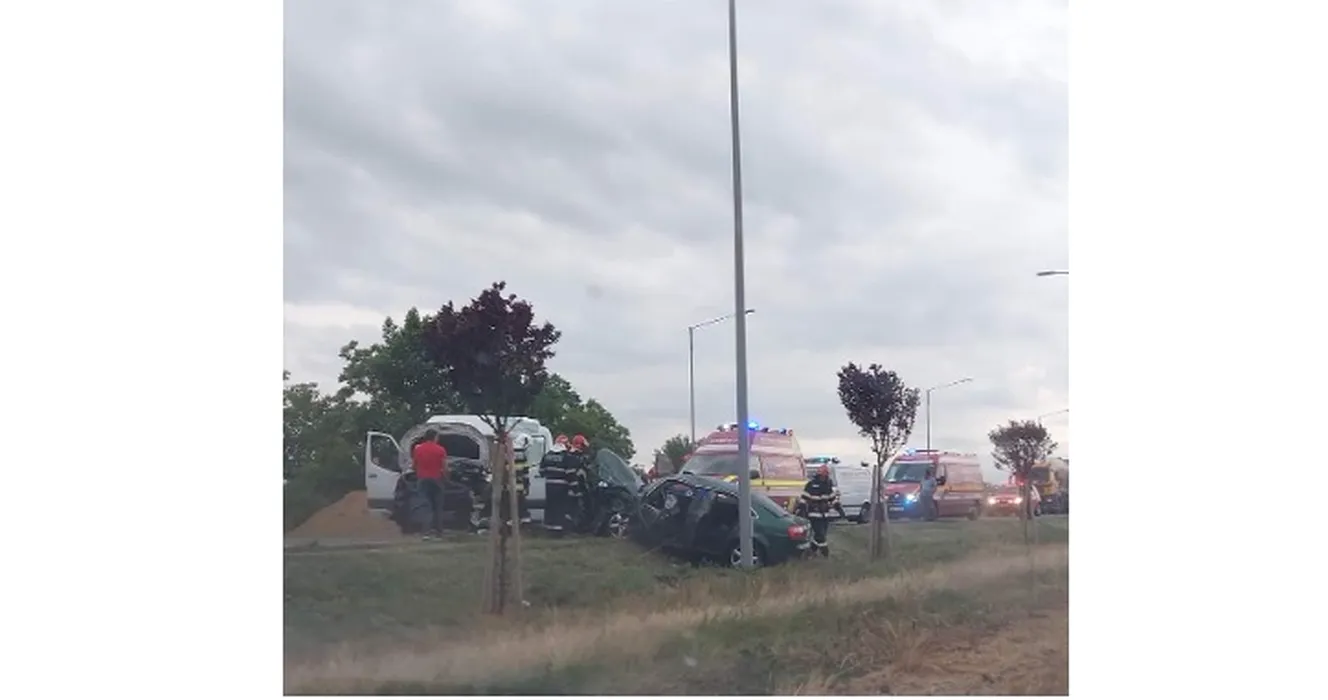 FOTO | Accident în Ilfov: Șoferul unui Audi a intrat pe contrasens și a lovit frontal un microbuz în care se aflau 5 persoane. Traficul este blocat pe ambele sensuri