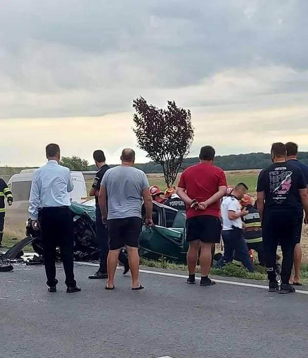 FOTO | Accident în Ilfov: Șoferul unui Audi a intrat pe contrasens și a lovit frontal un microbuz în care se aflau 5 persoane. Traficul este blocat pe ambele sensuri