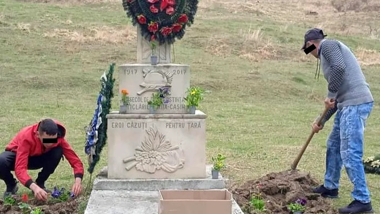 FOTO | Au băut bere cățărați pe monumentul eroilor, iar primarul le-a dat o pedeapsă istorică