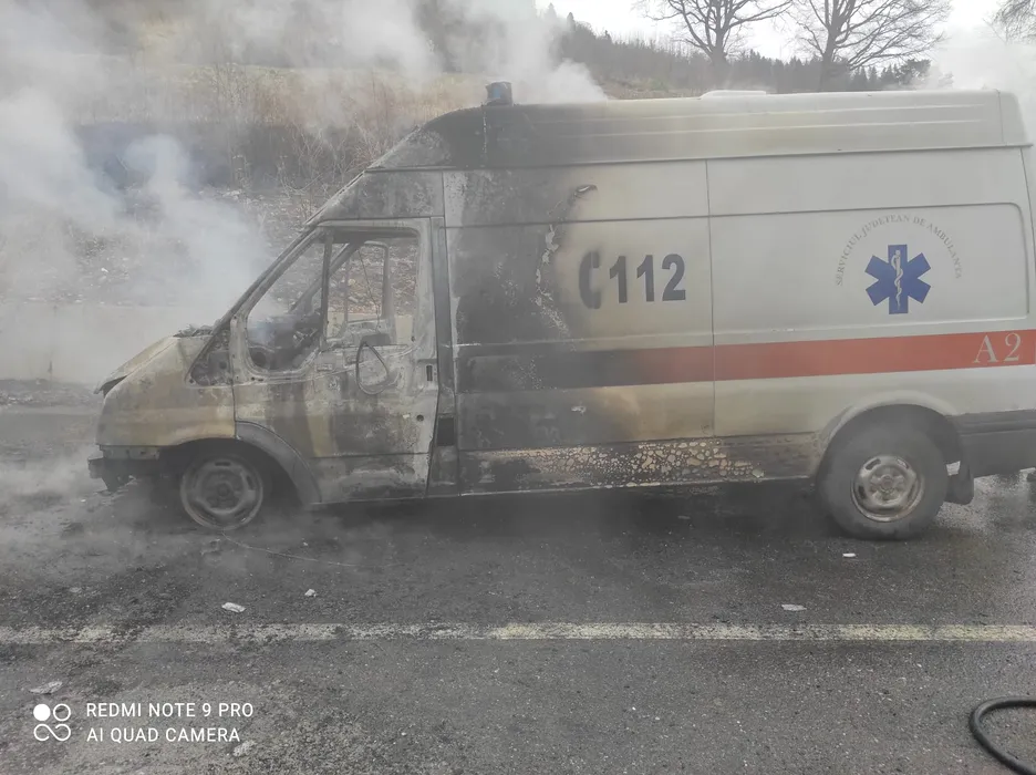 FOTO | Au început să ia foc și ambulanțele. De ce a ars în mers o salvare de la SAJ Neamț