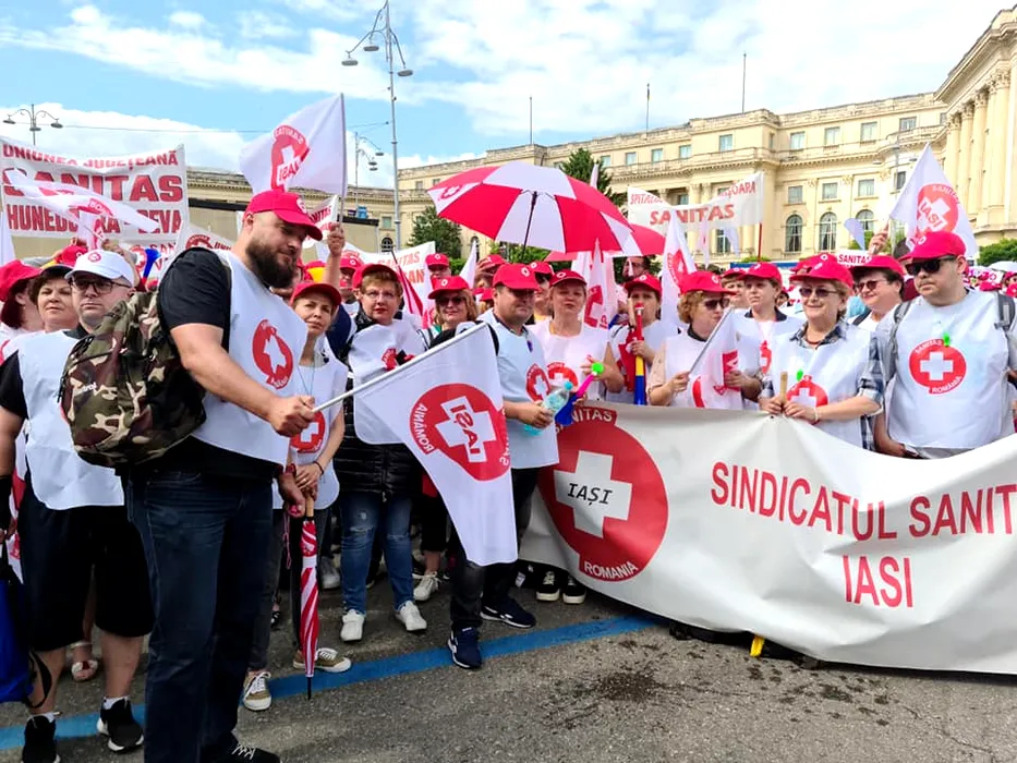 FOTO – VIDEO | Cadrele medicale și angajații din sistemul de asistență socială au ieșit în stradă și cer salarii mai mari: „Pensii speciale voi vă dați. Legea 153 nu o respectați”