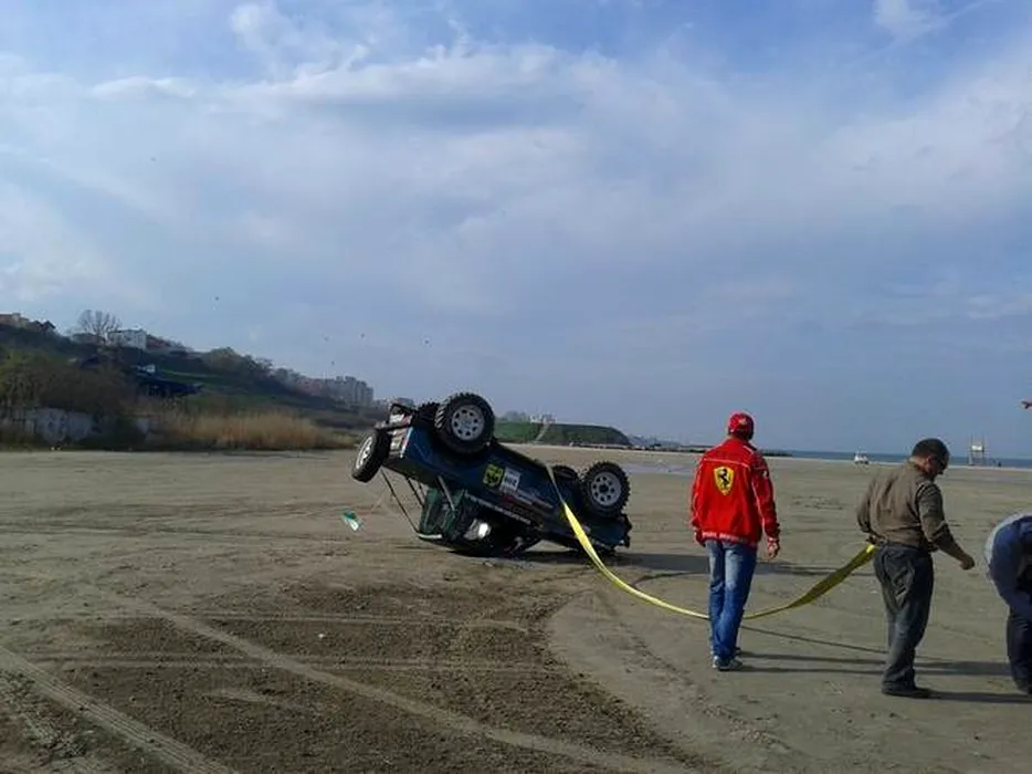 FOTO: Ce a pățit un șofer care a vrut să „sperie” plaja din Constanța cu mașina lui