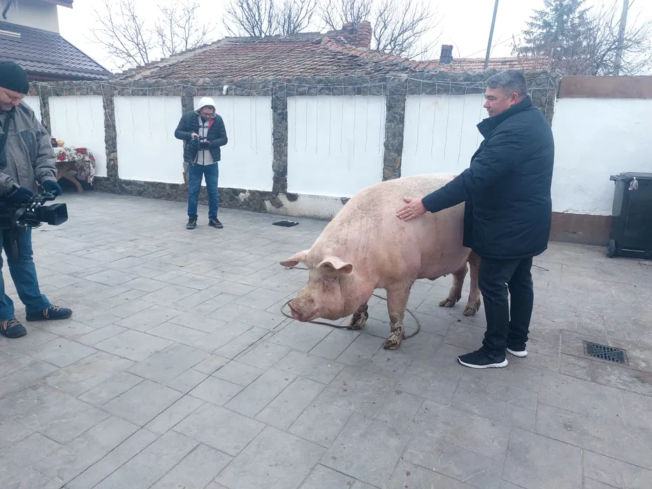 FOTO | Cel mai mare porc de Crăciun de anul acesta a fost sacrificat astăzi la Craiova. Marcel cântărea peste 714 kilograme