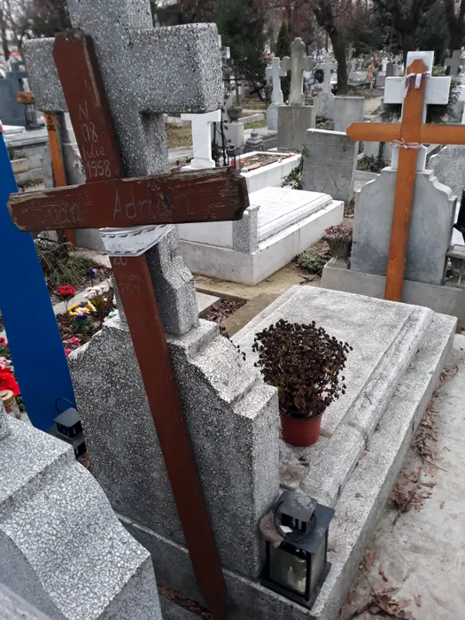 FOTO | Doar două ghivece cu flori uscate se mai găsesc la Adrian Iovan la mormânt. Timpul i-a șters și numele de pe cruce