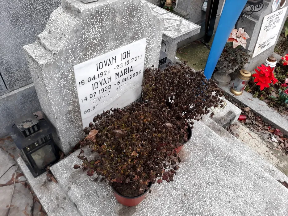 FOTO | Doar două ghivece cu flori uscate se mai găsesc la Adrian Iovan la mormânt. Timpul i-a șters și numele de pe cruce