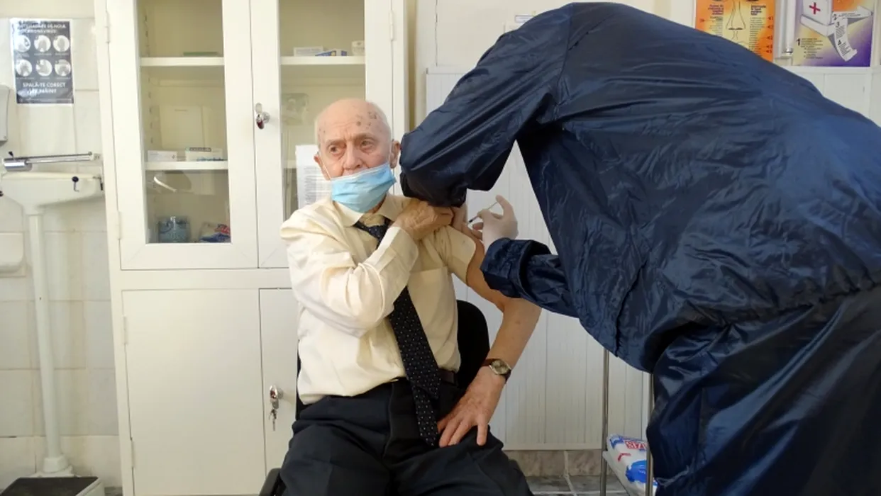 FOTO. Doi colonei în retragere ai Armatei Române de 101 și 99 de ani s-au vaccinat anti-COVID. “Împreună vom reuși!”