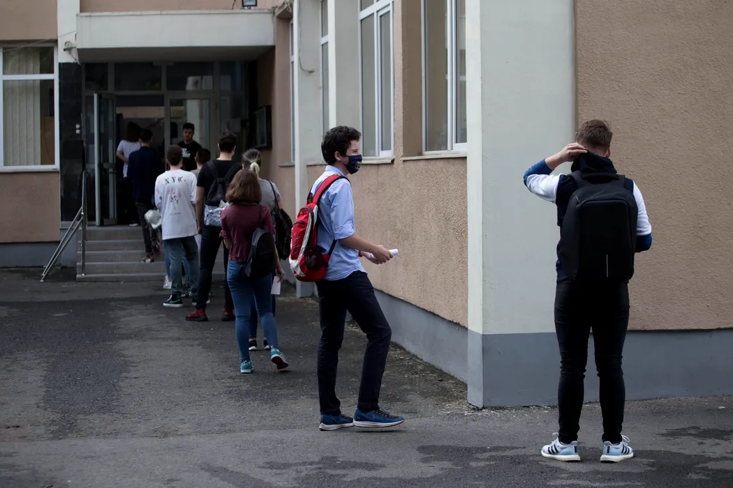 FOTO EXCLUSIV. Prima probă la BAC, cu emoții la română: Tunel cu dezinfectant, Poliție și speranța „că pică romanul”